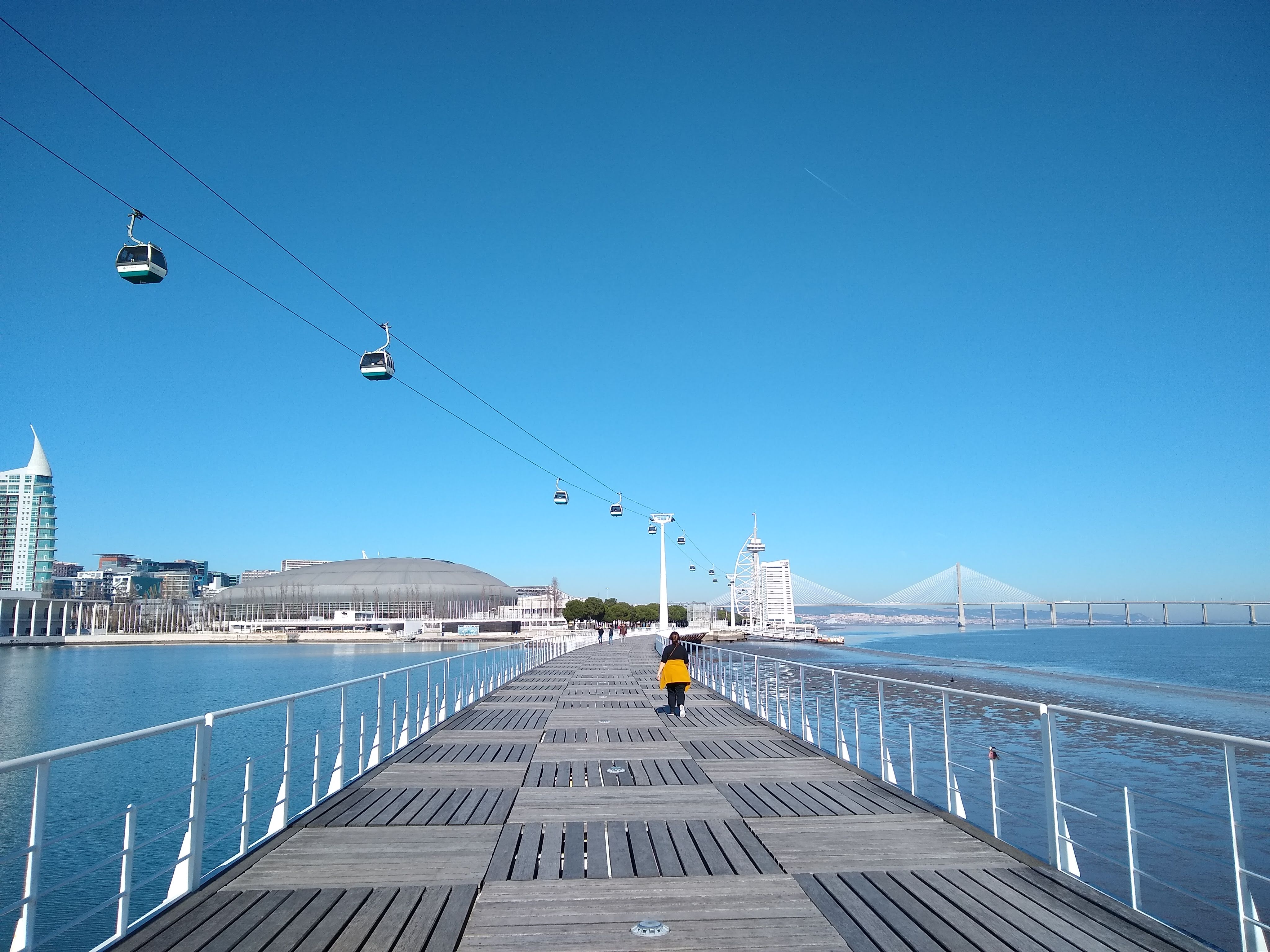A few years ago I spent an afternoon in Lisbon in the Parque das Nações, a waterfront district along the Tagus River that was originally built for the oceans-themed Expo98. The wide promenade was a perfect place for a walk on a sunny January afternoon, and there was also a cable car for people tired of walking. I visited the Oceanário de Lisboa, which had been the centrepiece of Expo98, and I enjoyed watching the otters and other animals with dozens of school children.
