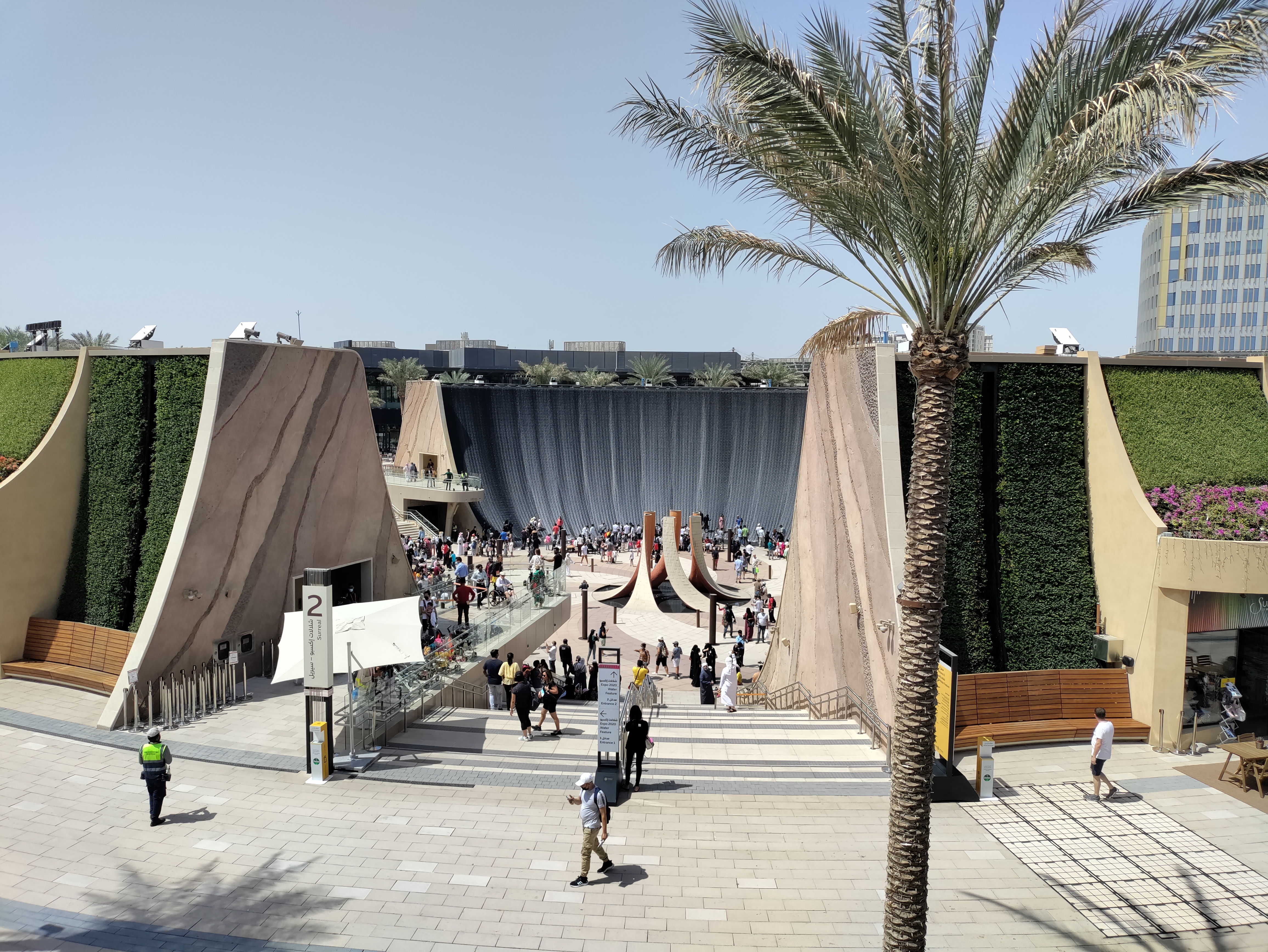 Emanating from the Al Wasl Dome were several long boulevards leading to the different districts, each which had its own generic name: Sustainability, Mobility, and Opportunity. Each district had a central pavilion dedicated to its respective theme as well as several dozen country pavilions. The grounds also had two parks where you could take a break, and we especially enjoyed the so-called ‘Water Feature’ which was a nice respite from the heat.