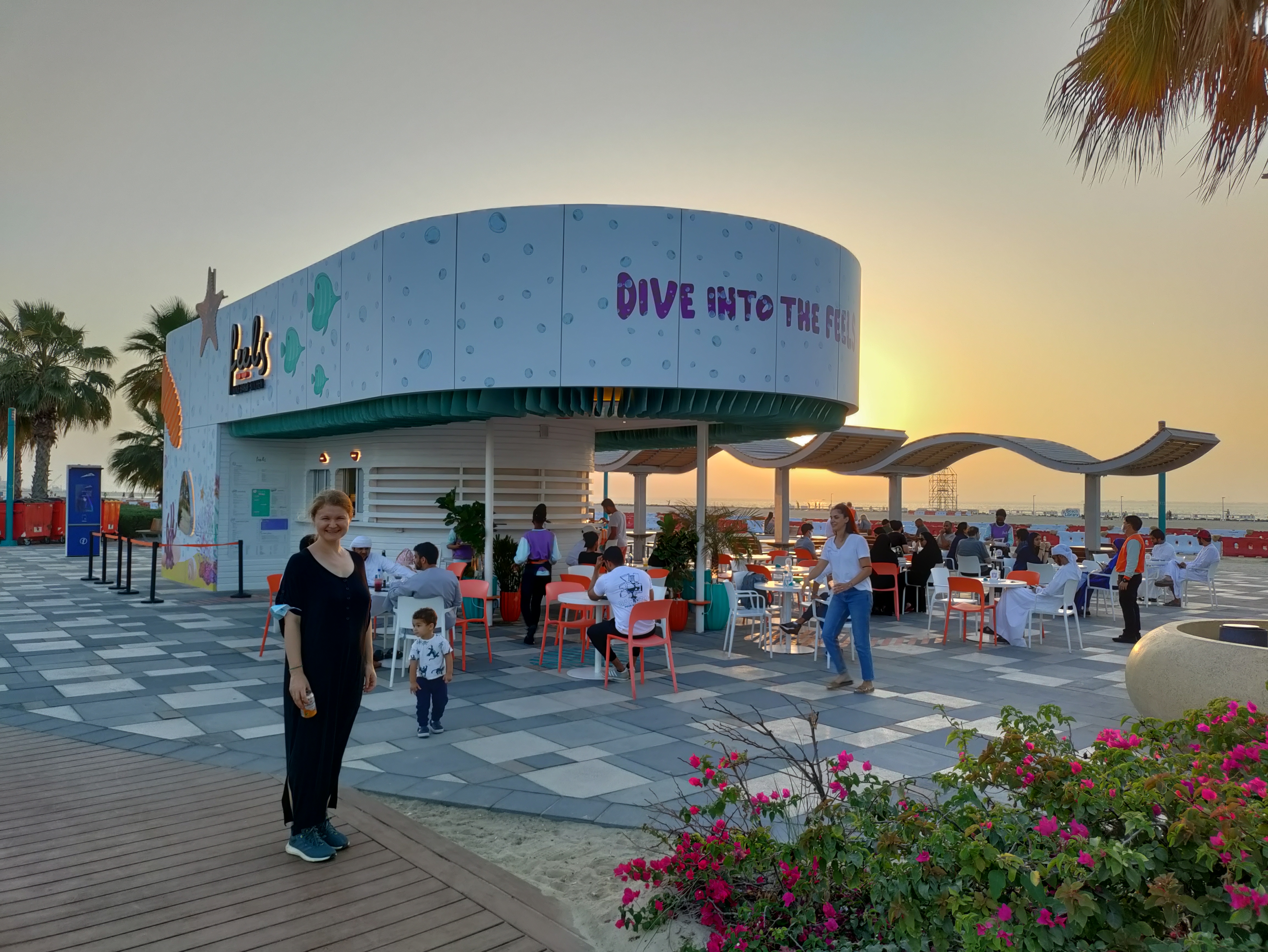 Dubai certainly has its fair share of private beaches, but it also has long stretches of public beach, and so one afternoon we took a bus to one end of Kite Beach and then just started walking. We saw many people walking, jogging, or just chilling by the beach, and it seemed so nice to have such a space be both free and open to the public. There were a few cafes along the route and we stopped at one called Salt where Jessica had an extravagant Sundae.